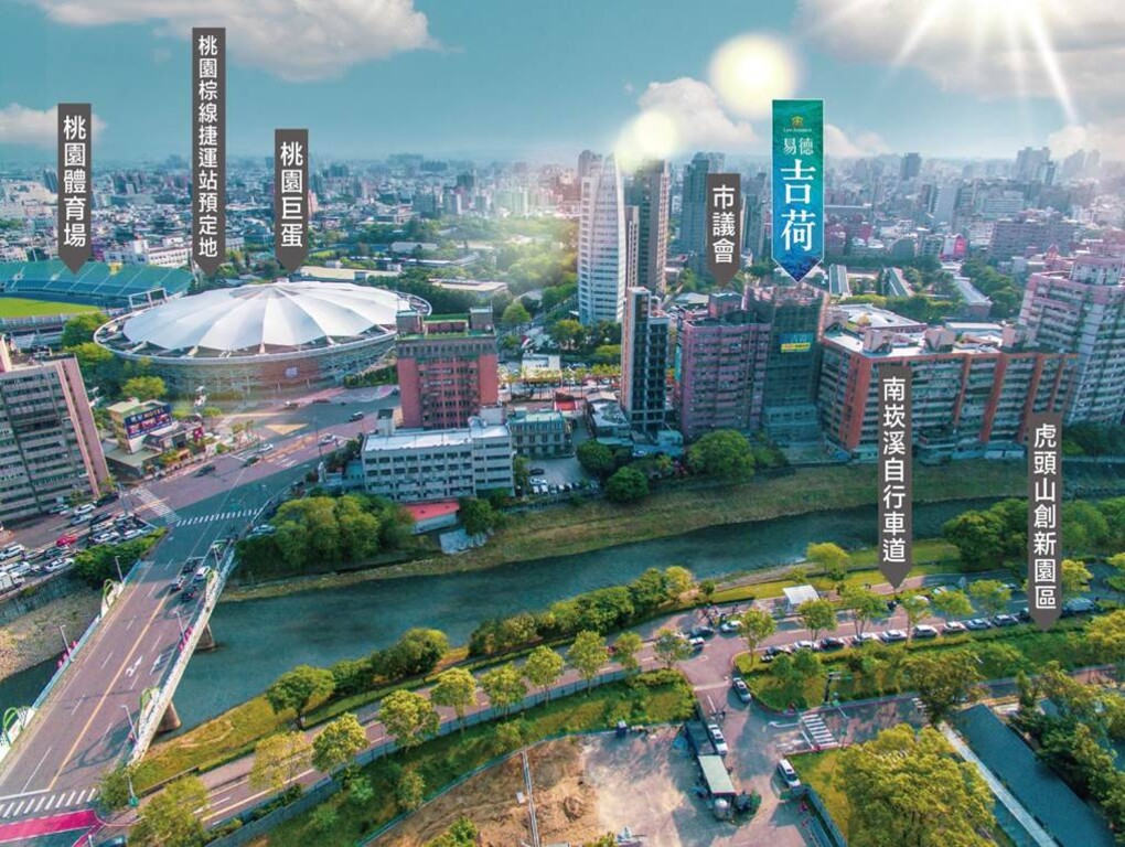 南崁溪水景第一排,河岸公園環伺,綠蔭宜居,更獨有耗資數十億的桃園運動中心滿足全齡健康生活。桃園棕線巨蛋站一站直抵桃園車站,一線串聯捷運『新蘆線』超越綠線直抵台北,未來增值可期。