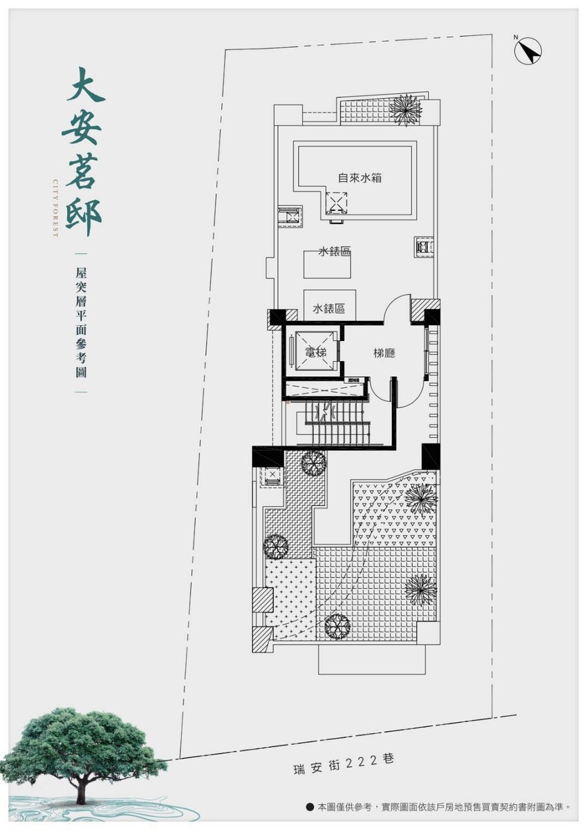 「大安茗邸」位於台北市大安區瑞安街222巷35號,由睿泰開發股份有限公司投資建設,上裕開發股份有限公司營造,何鴻志建築師事務所建築設計,基地面積90.14坪,建蔽率42.53%,公設比39%。樓層規劃為1棟地上10層、地下3層建築,共有18戶住家。格局坪數規劃二房,1.5衛(22坪) 、雙主臥,2衛(30坪)。