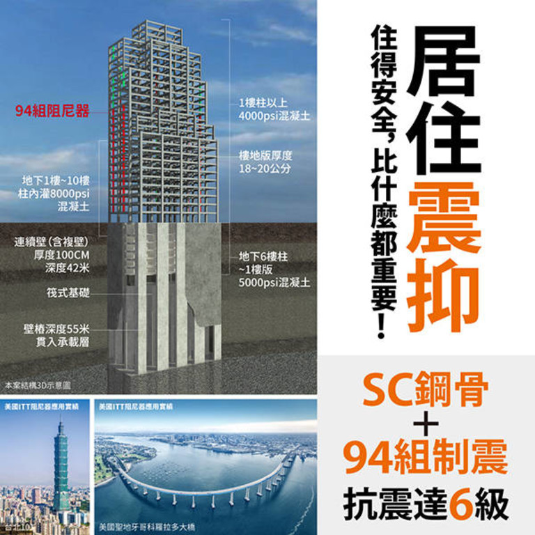 SC鋼骨主結構+94組美國ITT阻尼器 耐震六級