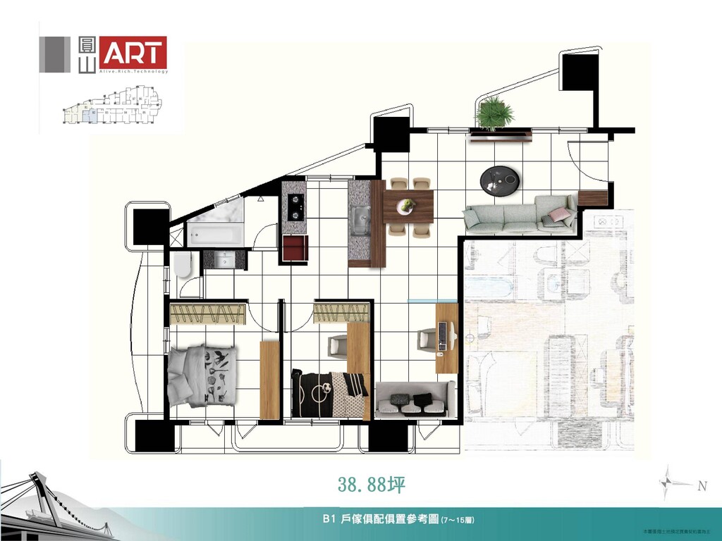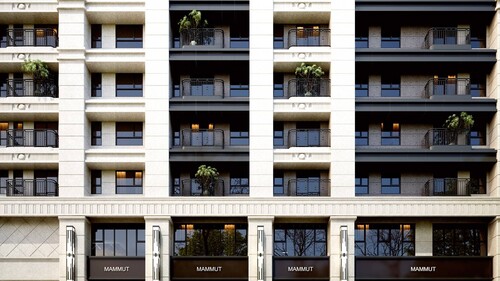 建築規劃:建築面寬達46米,比照豪宅規格外觀全棟石材。結構部分為SRC+日本住友制震壁,提升耐震級數達六級。