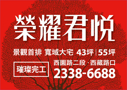 國際住宅新視野 ,都會豪宅新軸線 ,捷運萬大線先前工程年底將正式啟動(預定民國107年,「萬華車站雙子星BOT案」即將蛻變為20層摩天大樓,「榮耀君悅」步行距離即可接軌國際,超高速增值列車即將起航 現在睿智佈局,未來輕鬆站上價值的高峰。 十所學府氣質比鄰 菁英教育完美佈局 「榮耀君悅」座落華江高中旁人文首排周邊十所學府族擁12年國教一路直升,華江高中超高升學率的讀書風氣,更為孩子的菁英教育完美佈局。 磅礡大器的景觀 前所未有的震撼 高樓層開窗即見華江高中校園景致,大片綠地城市美景盡入眼底,生活與品味在此完美相遇更演繹了「榮耀君悅」傳奇的魅力。 以精工品質打造榮耀棟樑-榮曜建設 「榮耀君悅」深耕在地多年 先建後售的實力,精工內涵的建築實續 讓每一棟榮耀建築都是最永恆的博世經典