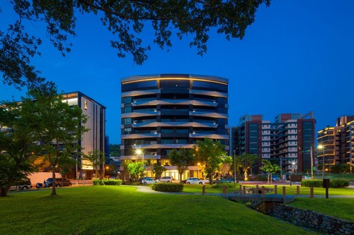 一樓LOBBY相連,設有交誼廳、健身房、閱覽區、宴會廳等,並有多條生態步道、景觀區綠意盎然;規畫103個平面坡道停車格,採ETC車道感應快速方便。
