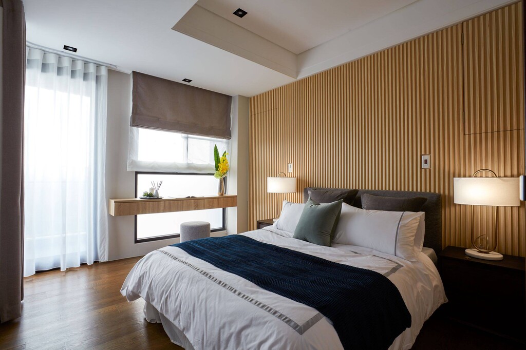 ●衛浴:全部衛浴皆有開窗通風,淋浴拉門乾濕分離,地板皆鋪板岩磚。主臥衛浴為增加視覺美感採豪宅規格式「降板浴缸」,不僅符合人體工學高度,還添加了實用的保溫功能。